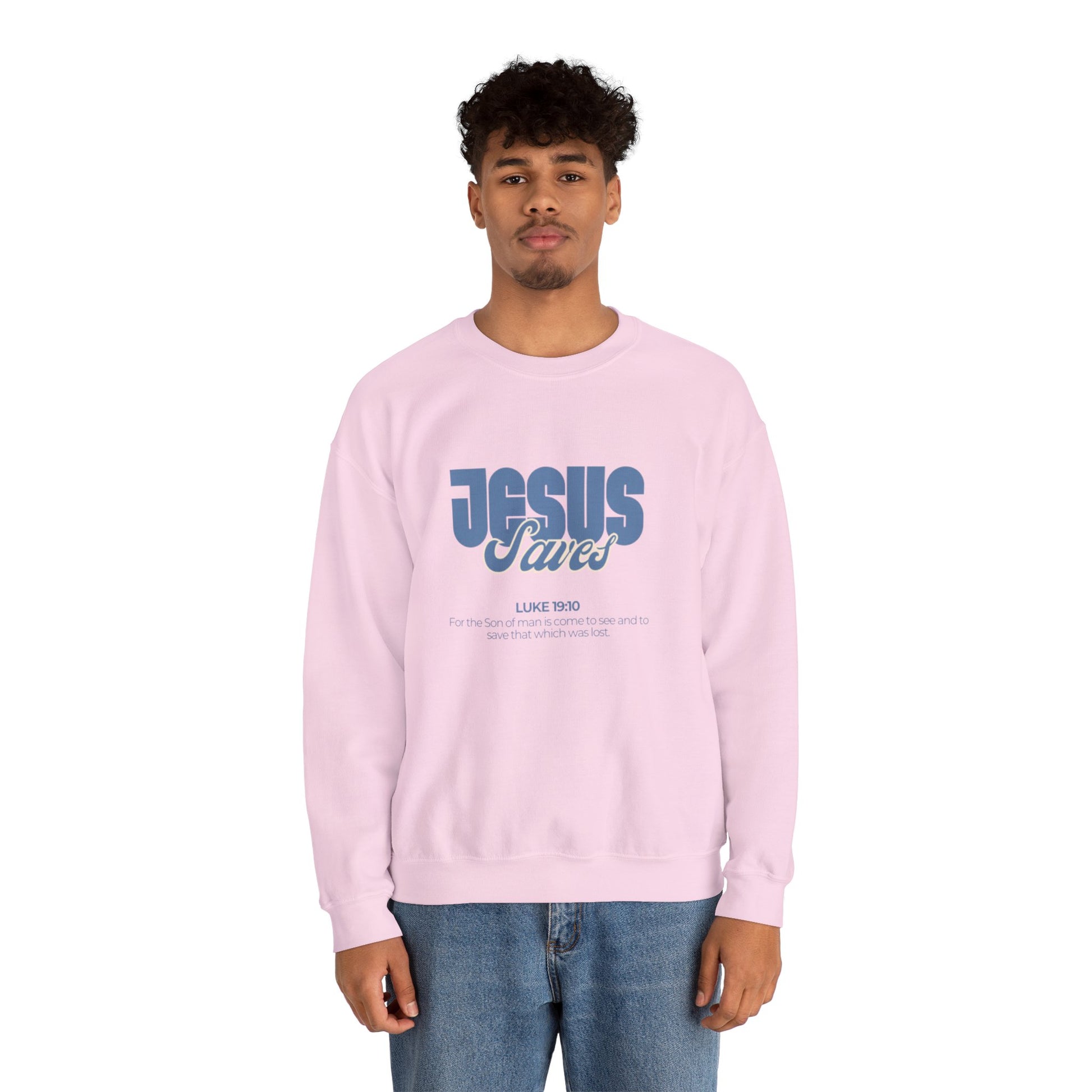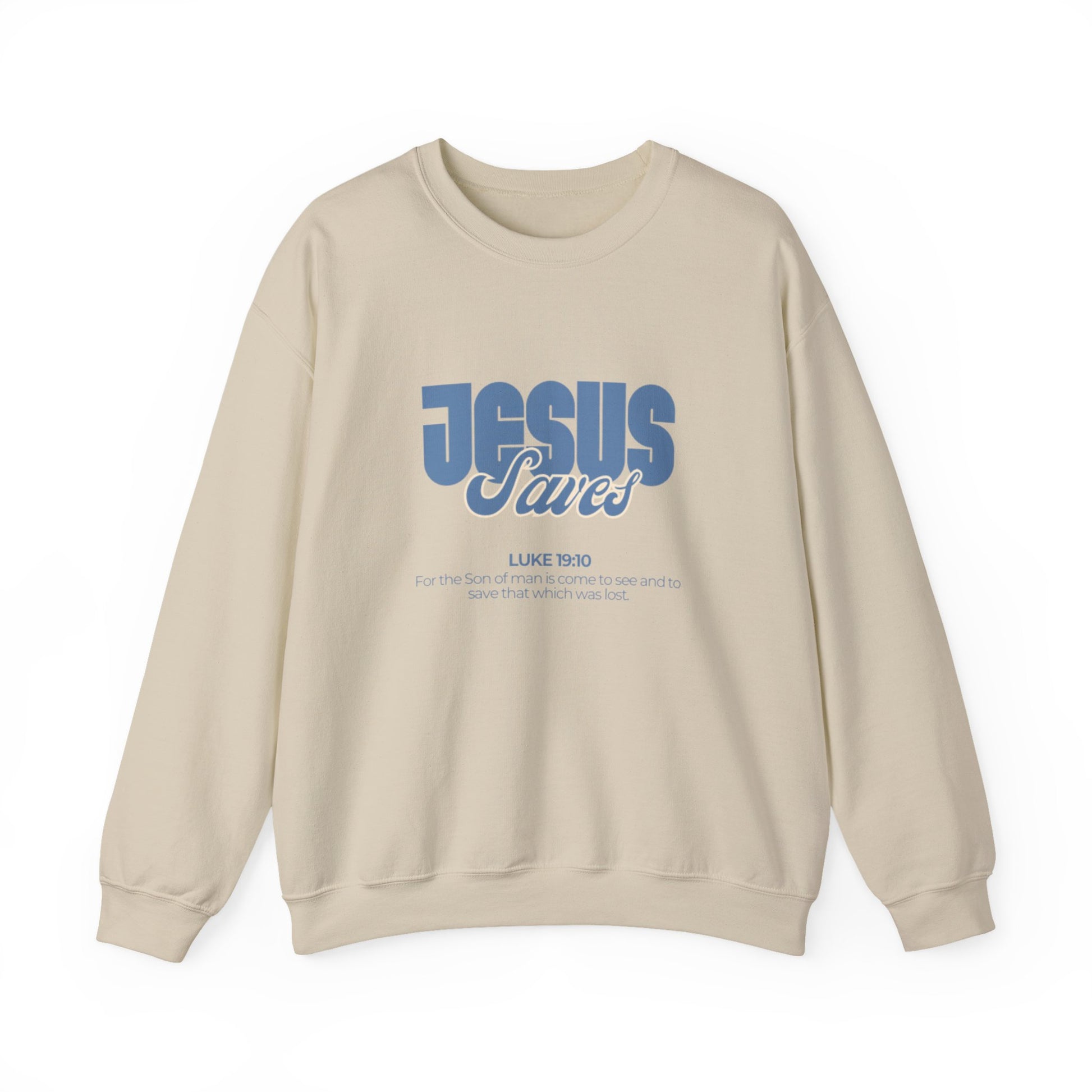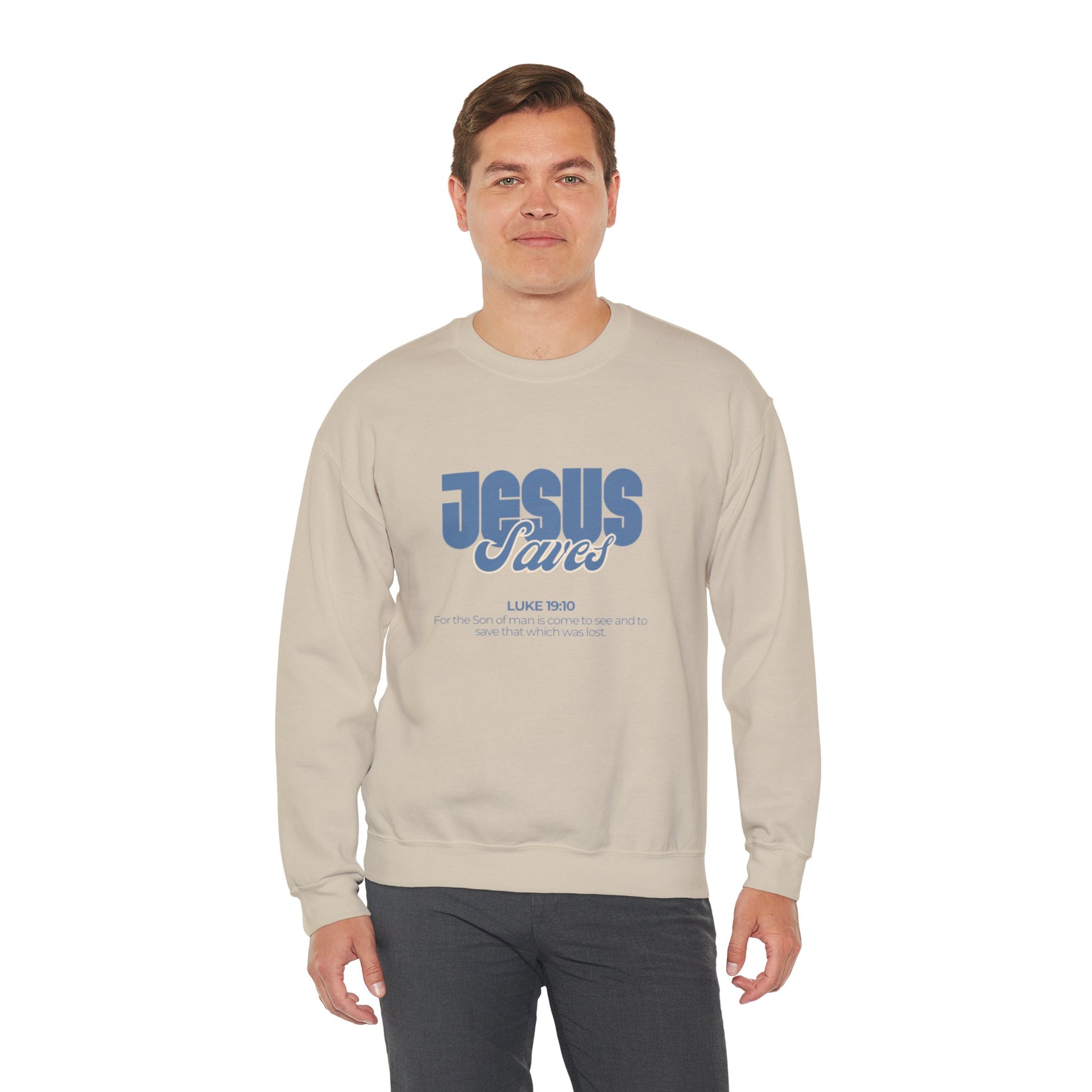 Christian Crewneck Sweatshirt — "Jesus Saves" Luke 19:10