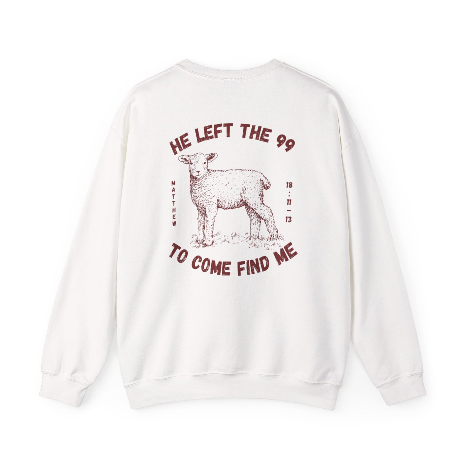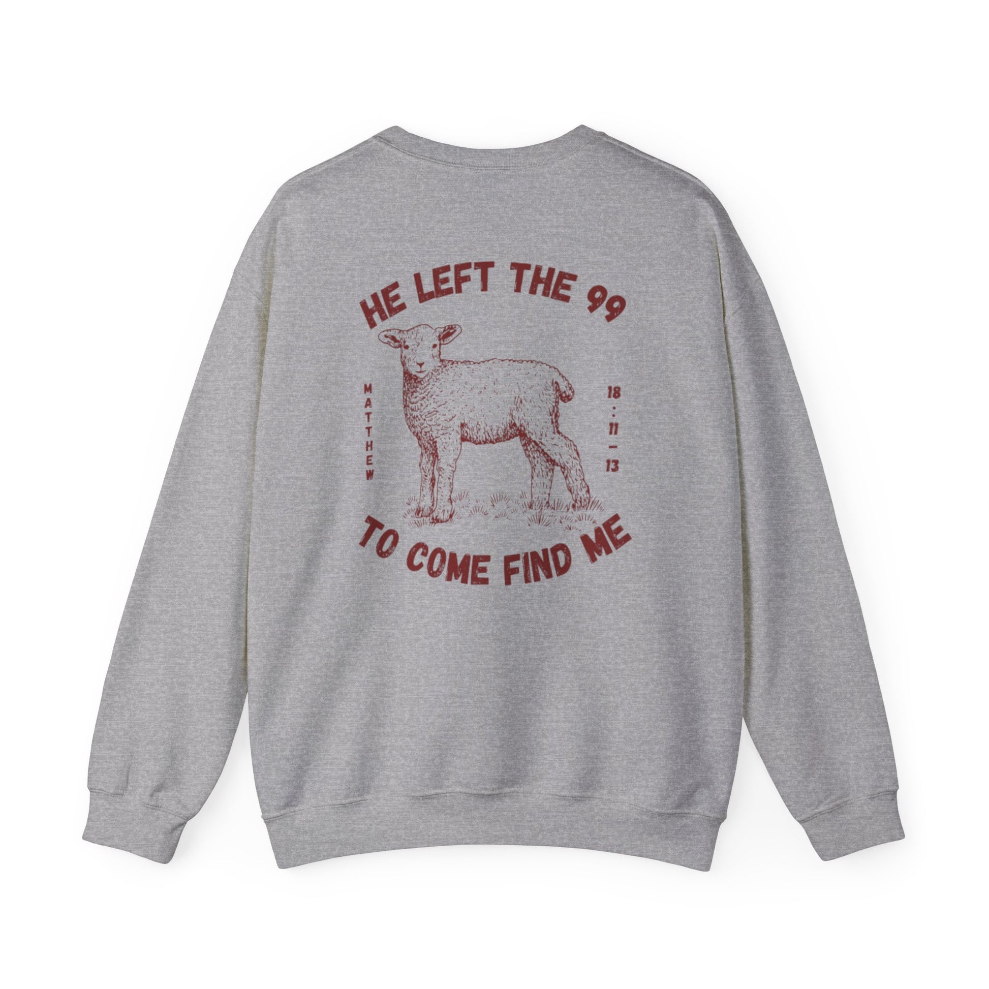 Christian Lamb Crewneck Sweatshirt - 'He Left the 99 to Come Find Me'