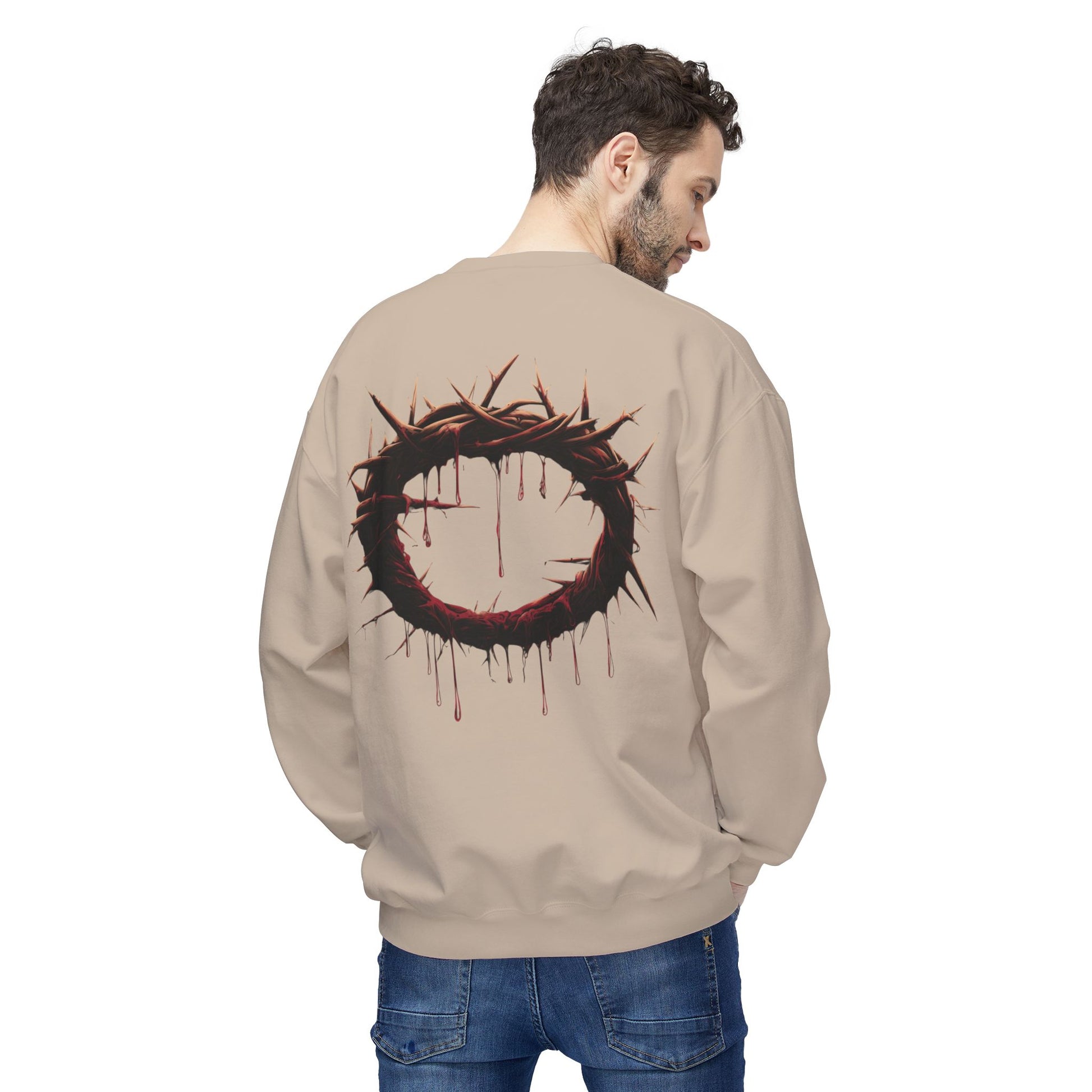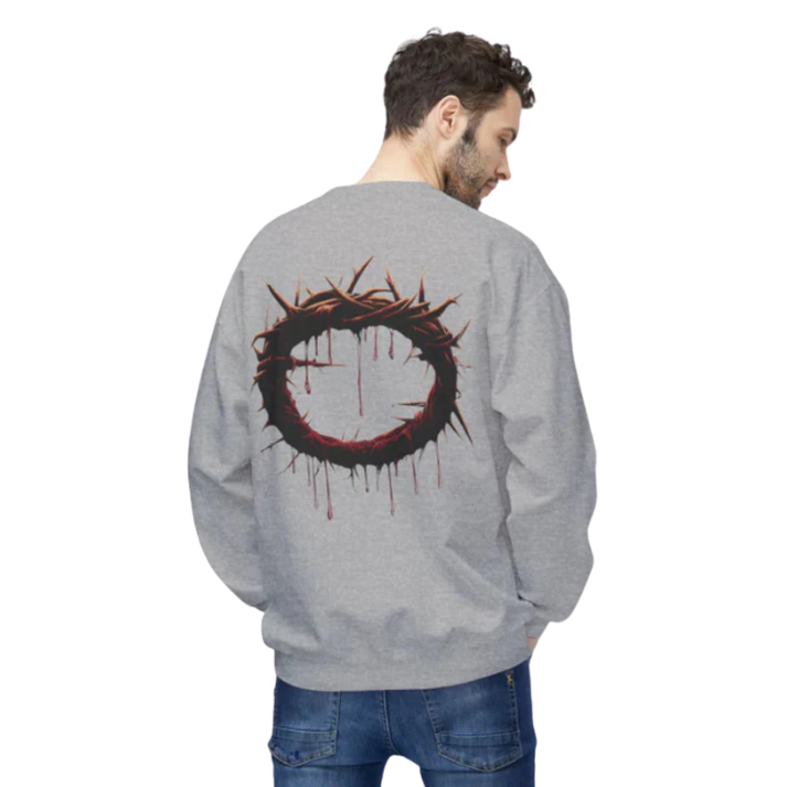 This crown of thorns sweatshirt exudes a unique and edgy vibe, perfect for those who appreciate artistic and meaningful designs. It can be worn casually for a laid-back yet stylish look. Ideal for individuals who enjoy making a statement with their outfit choices. Relevant for Eastern and Church events,