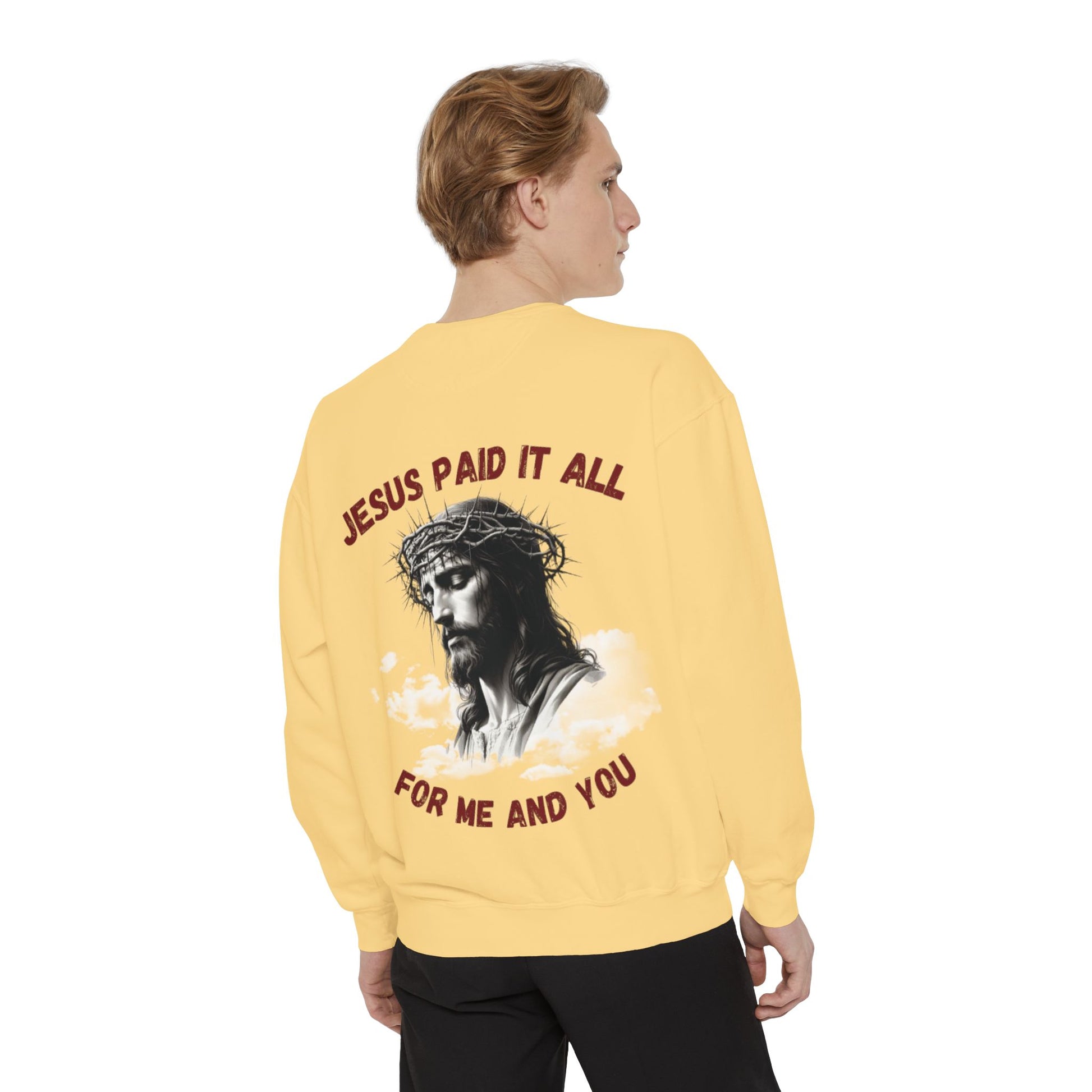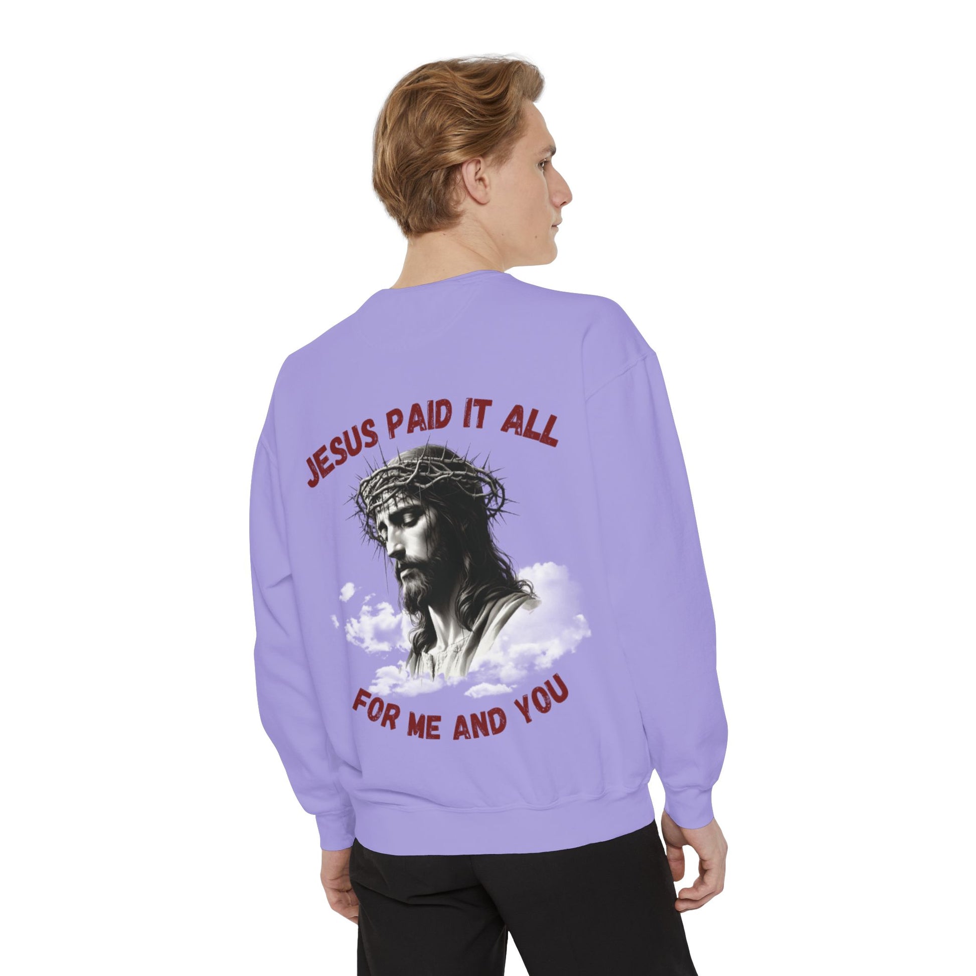 This Jesus paid it all unisex sweatshirt exudes a sense of faith and spirituality, making it a perfect addition to the wardrobe of a devout Christian or someone seeking to express their beliefs. The soft and luxurious fabric provides comfort and warmth, while the relaxed fit allows for easy layering. Ideal for wearing during church events, religious gatherings, or everyday to spread a message of love and redemption.